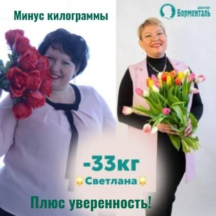 "За 12 месяцев я скинула 55кг. Кушаю все, меня теперь не тянет на сладкое и булки! Спасибо специалистам Доктор Борменталь. Всем желающим...